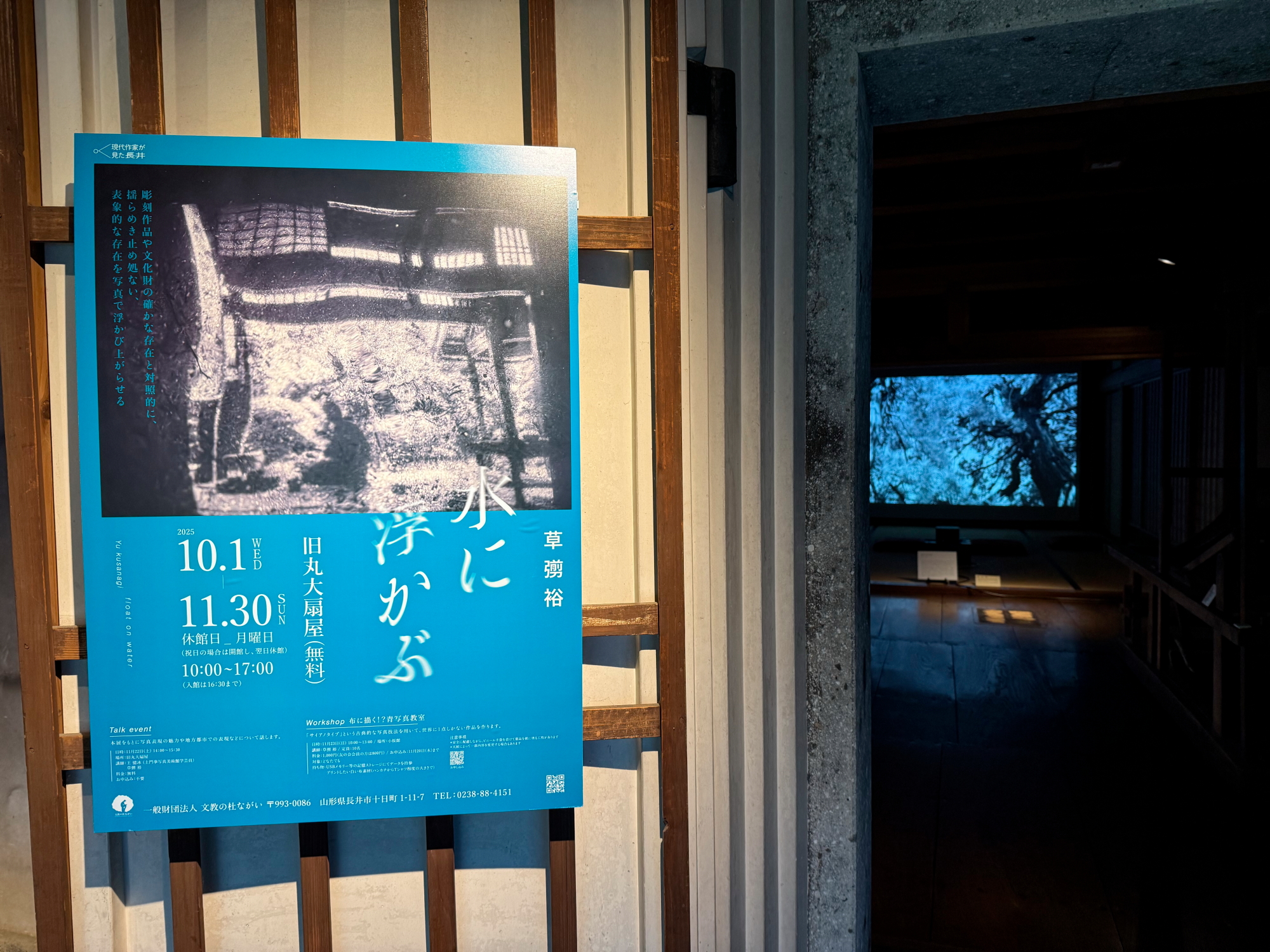 写真を見る前にこの建物に圧倒されてしまいます。草彅さんの写真も圧倒されました。長井に滞在することで着想を得た「水」をテーマにした作品がお座敷やお蔵など敷地内数箇所に渡り展示されていました。今月30日まで開催されているので、お近くにお立ち寄りの際はぜひ!
