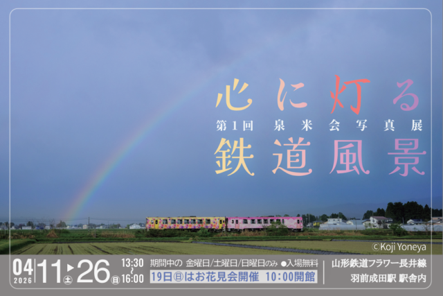 山形の桜のころ、鉄道写真のグループ展に参加します!題して「第1回 泉米会(せんべいかい)写真展 〜心に灯る鉄道風景〜」「泉米会」とは、鉄道写真家 広田泉さん、米屋こうじさんとの山形での出会いから誕生した写真仲間たちの会。会の名前は、お二人の...